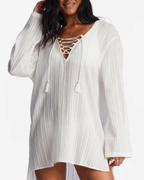 Complete your beach look with this striped swim cover-up. Made of airy cotton gauze, the relaxed shape is styled with a deep V-neck and lace-up ties.