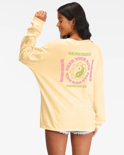 Feed your yin and fuel your yang with the Free Your Mind long sleeve t-shirt. Crafted with loose-knit cotton jersey, this long sleeve tee features a screenprint graphic at the chest and an easy, oversized shape thatβs great for tossing on over your bikini or pairing with some cut-offs.