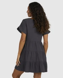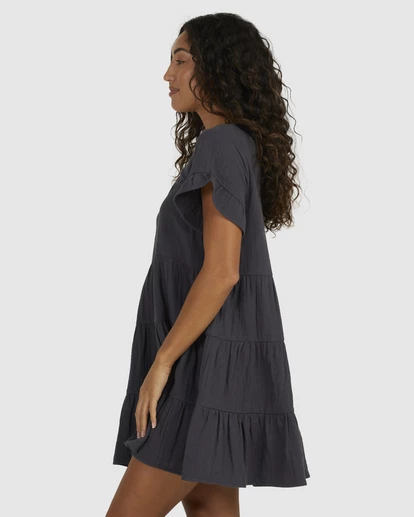 Made of textured cotton double gauze to keep it feeling light and airy, this baby doll mini dress has a floaty shape with flutter sleeves and a tiered ruffle skirt.