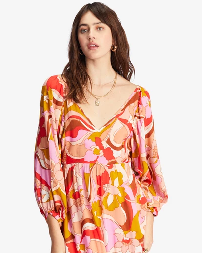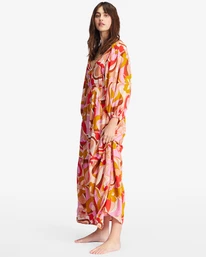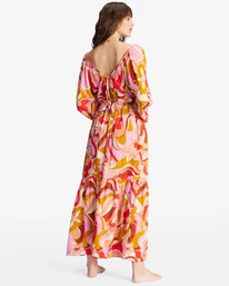 The Pretty Groovy dress is a retro-inspired beauty blending bold print and a boho silhouette. Made in viscose-modal fabric, this women’s V-neck maxi dress from our Castles In The Sand collection features 3/4 blouson sleeves, a tiered ruffle skirt, and a keyhole with tie closure at the back.