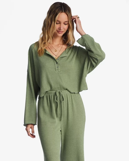 Easy-going and easy to wear, these cozy lounge pants are made of two-tone ribbed knit fabric with a high-rise drawcord waistband and a straight leg with a lettuce hem.