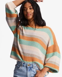 Keeping you warm and cozy with a soft blended knit, the Spaced Out sweater from our Stories From The Sun collection gives you the freedom to daydream away. The mellow vibes continue with a relaxed shape and a loose crew necklineโ the perfect stripes for any season.