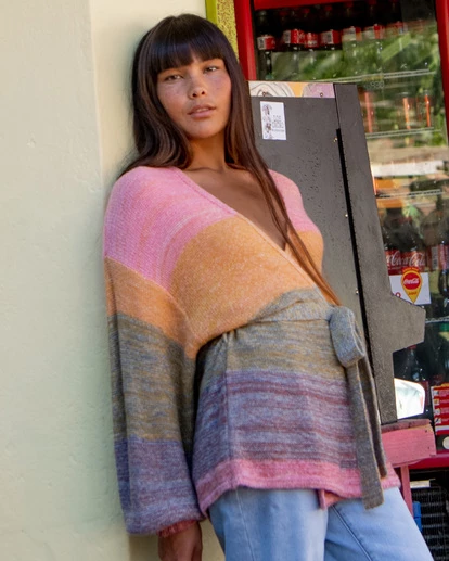Pairing dreamy color and a soft blended knit, the Surf Check sweater has a relaxed shape with an open front and a matching belt to pull the look together. This women’s cardigan can be worn over swim or as a cozy layer paired with your summer dresses and tops.