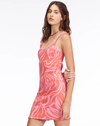 Out all day and up all day, the Till Dawn dress keeps the party going in a bold print and high-energy hues. This mid-length bodycon dress is made from soft ribbed cotton with lace detail at the neck and armholes.