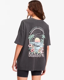 A go-to tee with all the warm and sunny feelsโ the Tropical Feelings boyfriend t-shirt is simply paradise. This women’s tee from our My Secret Beach Collection features paradise graphics on a loose-knit jersey crewneck. The oversized fit keeps it lightweight and comfortable. And that premium pigment-dyed color? That’s what gives this tee its perfect vintage style.