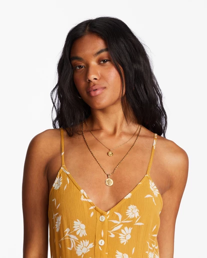 Sunkissed and essentialβ nothing beats the lightweight ease of a slip dress on a hot summer day. Whether you’re chilling around town or setting off for a holiday in the sun, the Venice Babe mid-length slip dress from our Under The Palms Collection is your go-to for all-day comfort and effortless style. Made with silky-soft crinkle fabric, it’s detailed with a V-neck, front buttons, and spaghetti straps. But the real attention-grabber here is its playful springtime print. And that’s what will have you reaching for this women’s dress again and again.