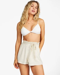 Sign off, unplug, and get off the grid in the Wander On Shorts. For these women’s lifestyle shorts, we’ve stripped it back to the bare essentials. No artificial dyes or fabrics here, only premium eco-conscious materials showcased in their natural state. Why? Because we believe what looks and feels good on you, should also be good for the ocean. These high-waisted women’s shorts from our Sea Thru Me Collection feature side pockets, a top edge ruffle, and an elastic waist with a removable rope belt.
