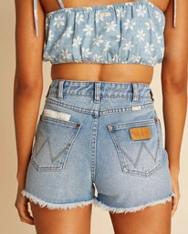 Your go-to denim is all patched up and ready to ride. The Showdown Patch Work denim short is high-waisted, with a button front closure, artistically placed patchwork, and Wrangler collection branding. Plus, they’re made with eco-conscious cotton so you can feel good in them, and also feel good about them.